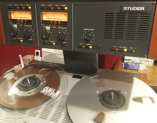今回のレコーディングのサンプリングレートは192Kより96Kの方がサウンド的に向いていると判断し、96K 32bitでマルチ録音した音源からデジタルとアナログ機器(ミキサー、イコライザー、コンプレッサー)を併用してミックスダウンを行い、CDやハイレゾ配信用とは別にオープンリール用のマスタリングをして96K 32bitマスターを作成しました。 そのマスターからSTUDER A807を使用しオープンリールテープに録音しています。